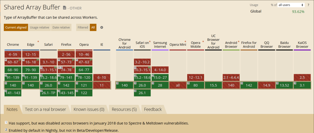 浏览器兼容性问题:请留意进入页面后弹出的浏览器兼容性提示(若有)。如下图是各种浏览器兼容情况(红色代表不可用,绿色代表可用),可以看出版本较新的 Chrome、Edge 和 UC、百度浏览器都支持。