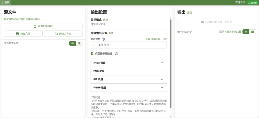 后来发现了一个更好的开源的基于浏览器的图片转换网站。它最大的特点是 直接在浏览器本地运行,所有处理都在用户设备上完成,不需要把文件上传到服务器。相比常见的在线工具(先上传、再处理、再下载),不仅避免了隐私泄露的担忧,还不用忍受铺天盖地的广告。